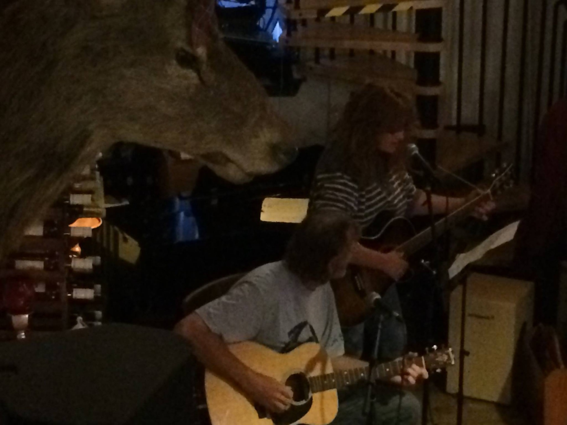 Steve and Penny in one of their last performances at Musa Cafe, Aberdeen...note the deer head and corporate dining wine bottles - perhaps a pseudo-Scottish attempt to gentrify the community space...(the weekly open mic was terminated shortly after this photo was taken)